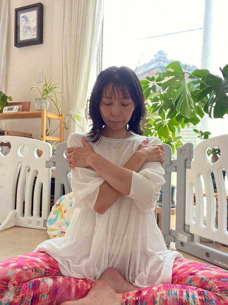 自分を抱きしめることで自身への思いやりや慈愛の気持ちが持てるようになります。それがそのまま他者への優しい眼差しになります。